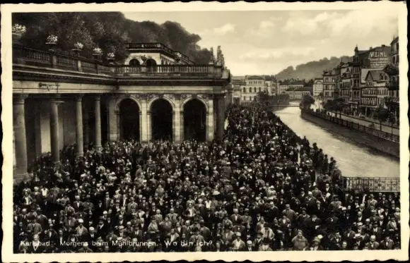 Ak Karlovy Vary Karlsbad Stadt, Morgens beim Mühlbrunnen