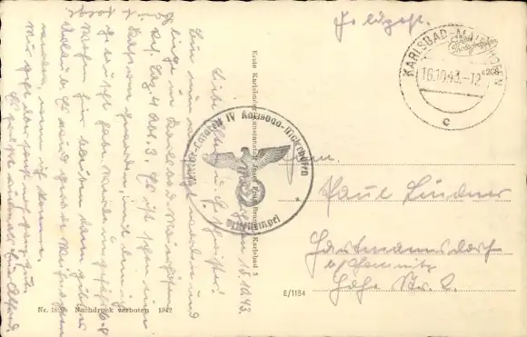 Zustand, siehe Scan, gelaufen, 1943 - ca 14 cm X 9 cm