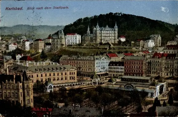 Ak Karlovy Vary Karlsbad Stadt, Panorama, Stadtpark