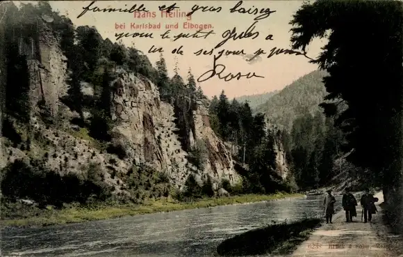 Ak Karlovy Vary Karlsbad Stadt, Partie am Fluss, Elbogen
