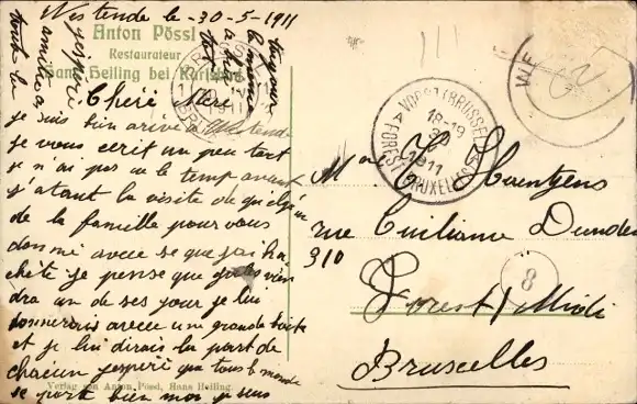 Zustand, siehe Scan, gelaufen, 1911 - ca 14 cm X 9 cm
