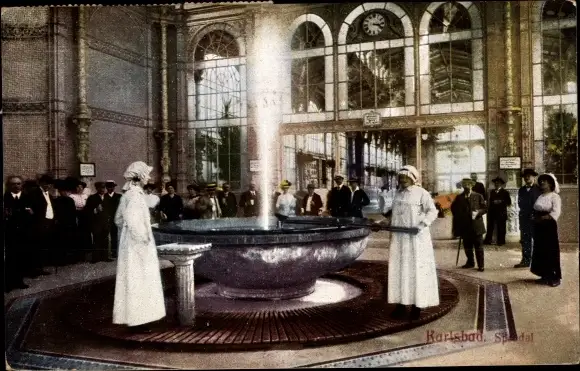 Ak Karlovy Vary Karlsbad Stadt, Partie am Sprudel