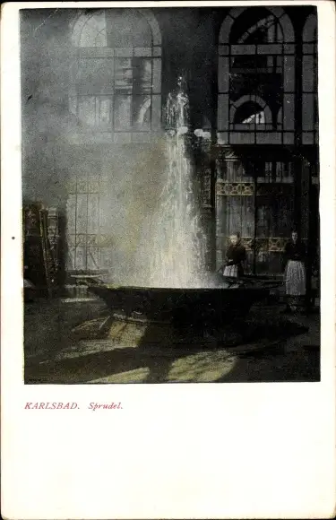 Ak Karlovy Vary Karlsbad Stadt, Partie am Sprudel