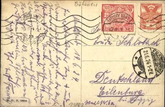 Zustand, siehe Scan, gelaufen, 1924 - ca 14 cm X 9 cm