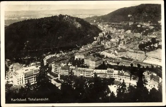 Ak Karlovy Vary Karlsbad Stadt, Totalansicht der Ortschaft