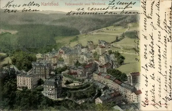 Ak Karlovy Vary Karlsbad Stadt, Totale von Westend