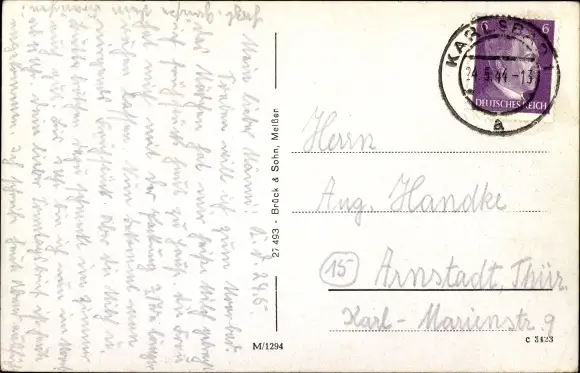 Zustand, siehe Scan, gelaufen, 1944 - ca 14 cm X 9 cm