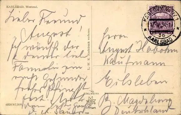 Ansichtskarte, Postkarte, Karlsbad, Karlovy Vary