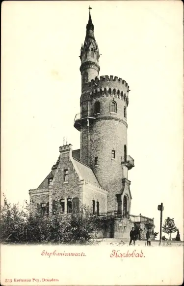 Ak Karlsbad, Stephanienwarte, Turmspitze
