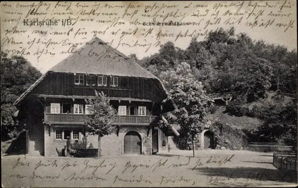 Ak Karlsruhe Baden, am Schwarzwaldhaus