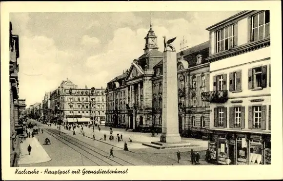 Ak Karlsruhe, Hauptpost, Grenadierdenkmal