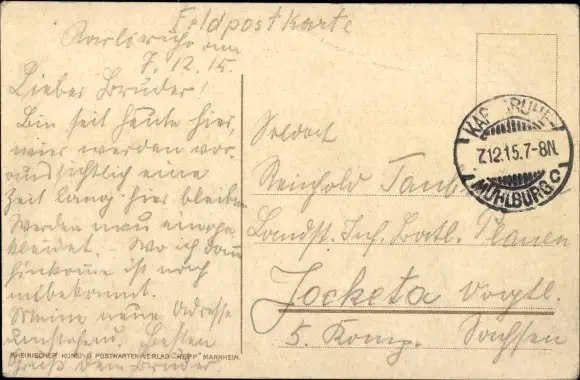 Zustand, siehe Scan, gelaufen, 1915 - ca 14 cm X 9 cm