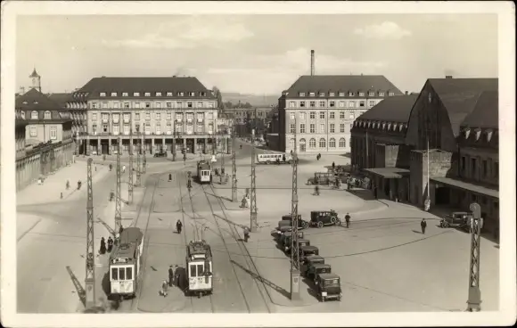 Ak Karlsruhe in Baden, Bahnhofsplatz, Straßenbahnen, Autos