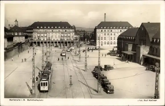 Ak Karlsruhe in Baden, Bahnhofsplatz, Straßenbahnen, Autos