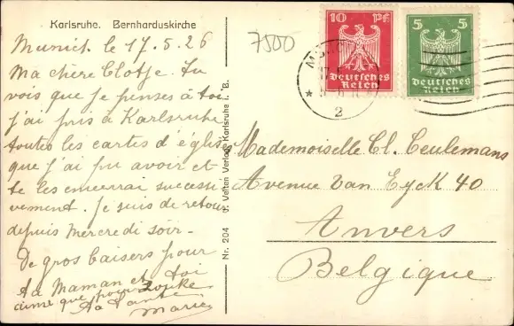Ak Karlsruhe in Baden, Bernharduskirche