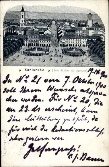 Ak Karlsruhe in Baden, Blick vom Schloss aus