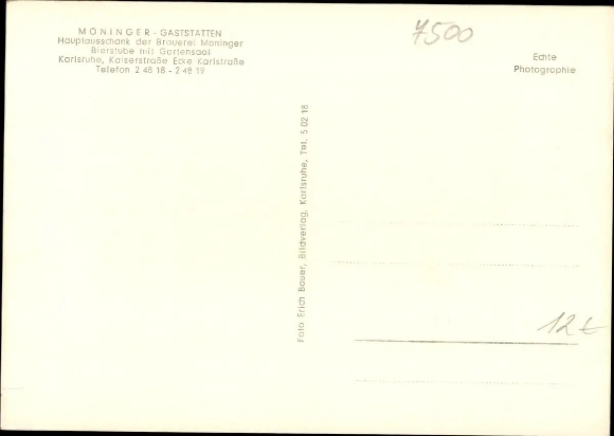 Ak Karlsruhe in Baden, Brauerei Moninger, Gaststätte, Hauptausschank, Bierstube, Gartensaal