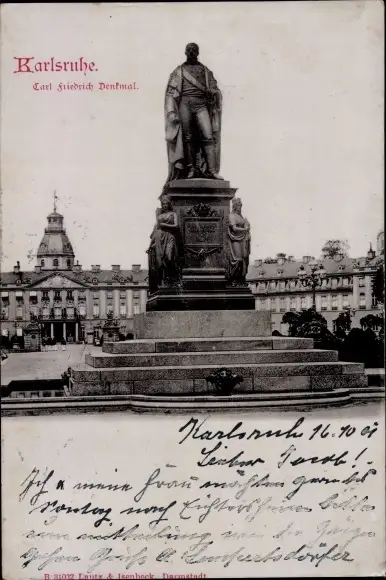 Ak Karlsruhe in Baden, Carl Friedrich Denkmal