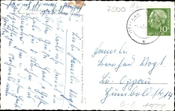 Zustand, siehe Scan, gelaufen- Inh. Karl Karcher - ca 14 cm X 9 cm