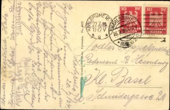 Zustand, siehe Scan, gelaufen, 1924 - ca 14 cm X 9 cm