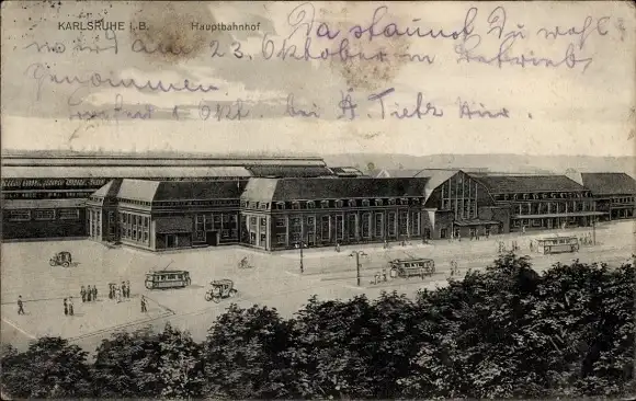 Ak Karlsruhe in Baden, Hauptbahnhof, Straßenbahn