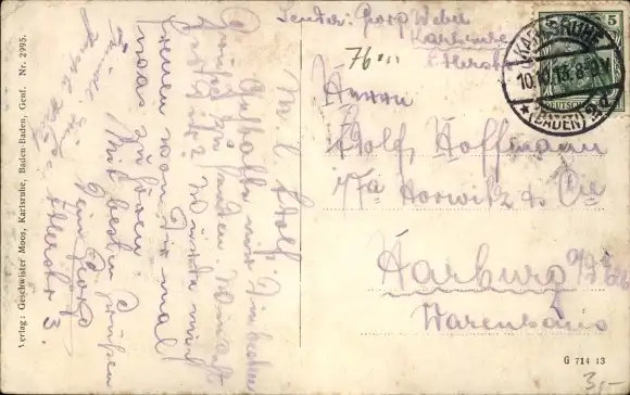 Zustand, siehe Scan, gelaufen, 1913 - ca 14 cm X 9 cm
