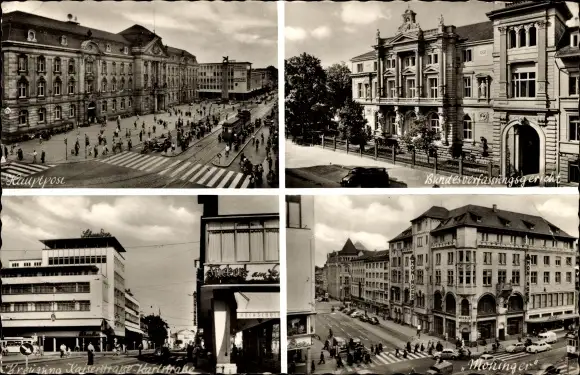 Ak Karlsruhe in Baden, Hauptpost, Bundesverfassungsgericht, Kaiserstraße, Karlstraße