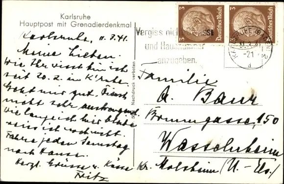 Zustand, siehe Scan, gelaufen, 1941 - ca 14 cm X 9 cm
