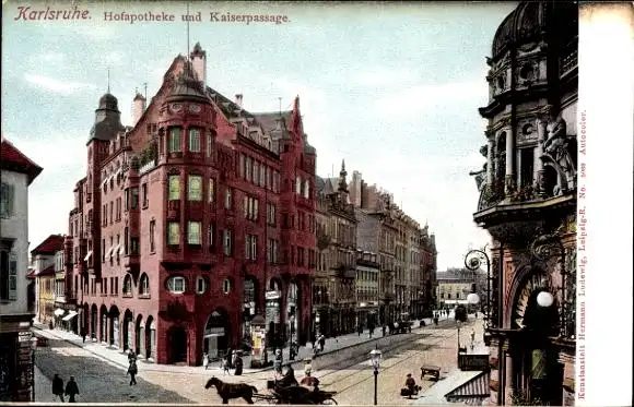 Ak Karlsruhe in Baden, Hofapotheke und Kaiserpassage