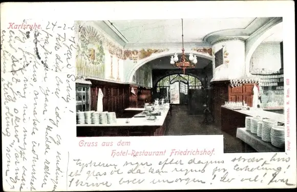 Ak Karlsruhe in Baden, Hotel-Restaurant Friedrichshof, Innenansicht