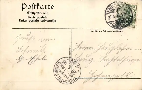 Zustand, siehe Scan, gelaufen, 1906 - ca 14 cm X 9 cm