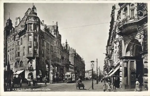Ak Karlsruhe in Baden, Kaiserstraße, Geschäfte, Straßenbahn
