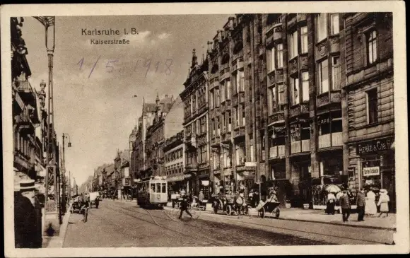 Ak Karlsruhe in Baden, Kaiserstraße, Geschäfte, Straßenbahn, Aretz & Cie