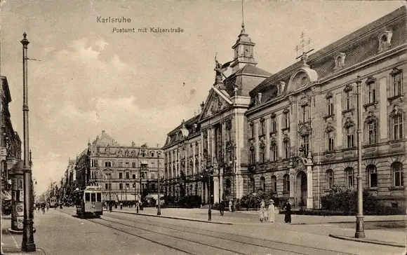 Ak Karlsruhe in Baden, Kaiserstraße, Postamt, Straßenbahn Linie 2
