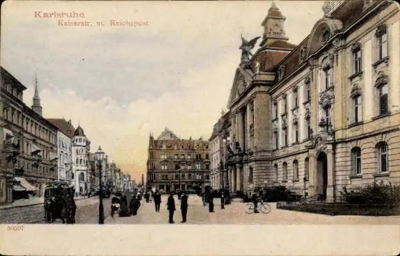 Ak Karlsruhe in Baden, Kaiserstraße, Reichspost