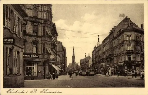 Ak Karlsruhe in Baden, Kaiserstraße, Restaurant zum Laub, Musikhaus von W. Halter