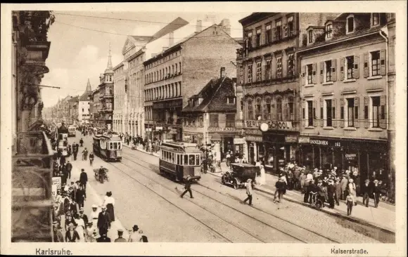 Ak Karlsruhe in Baden, Kaiserstraße, Straßenbahn
