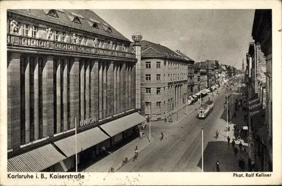 Ak Karlsruhe in Baden, Kaiserstraße, Straßenbahn