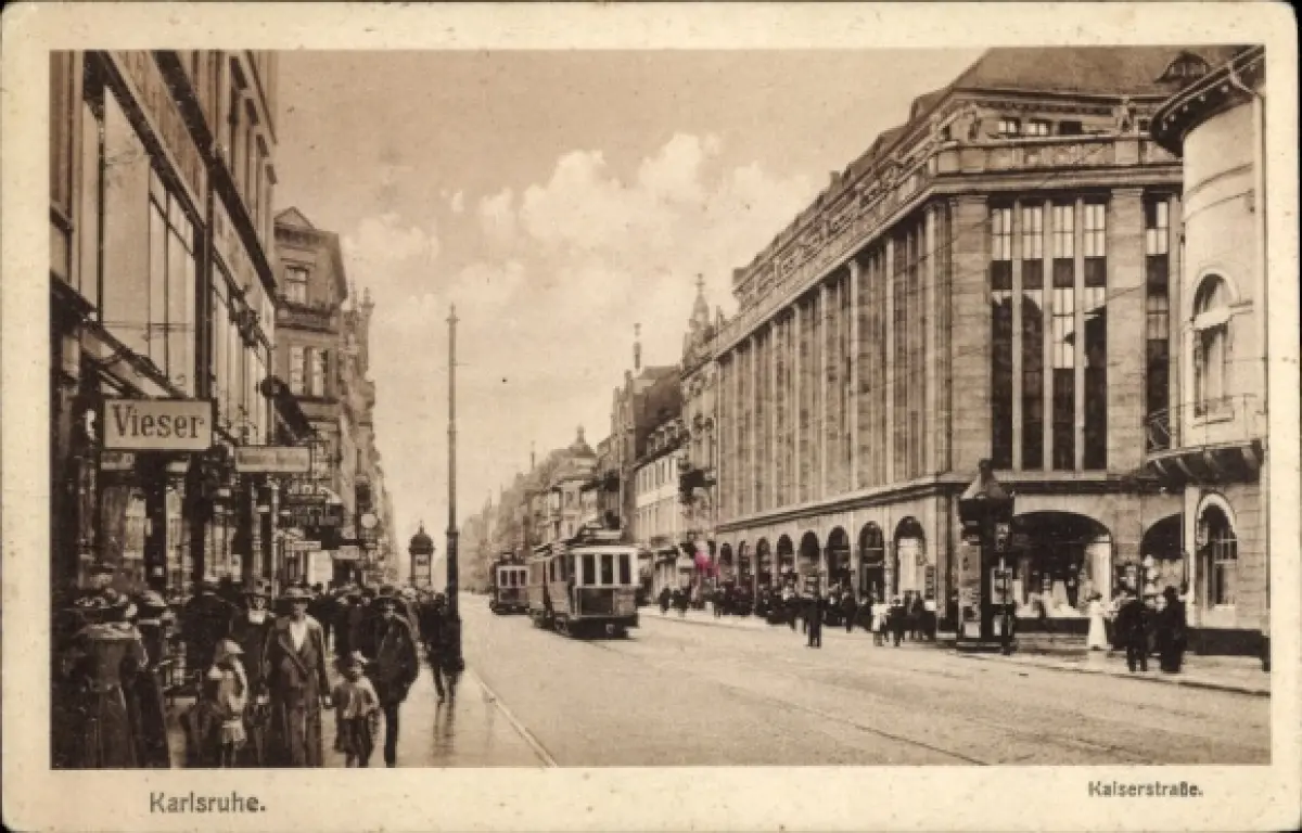 Ak Karlsruhe in Baden, Kaiserstraße, Straßenbahn, Geschäft Vieser