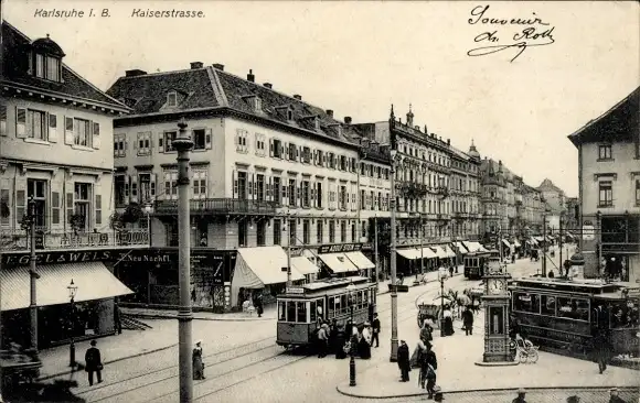 Ak Karlsruhe in Baden, Kaiserstraße, Straßenbahnen