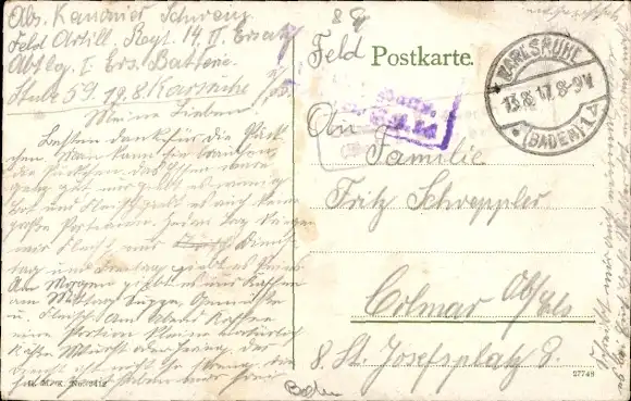 Zustand, siehe Scan, gelaufen, 1917 - ca 14 cm X 9 cm