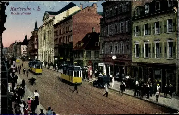 Ak Karlsruhe in Baden, Kaiserstraße, Straßenbahnen Linie 1