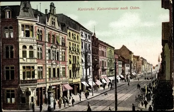 Ak Karlsruhe in Baden, Kaiserstraße nach Osten