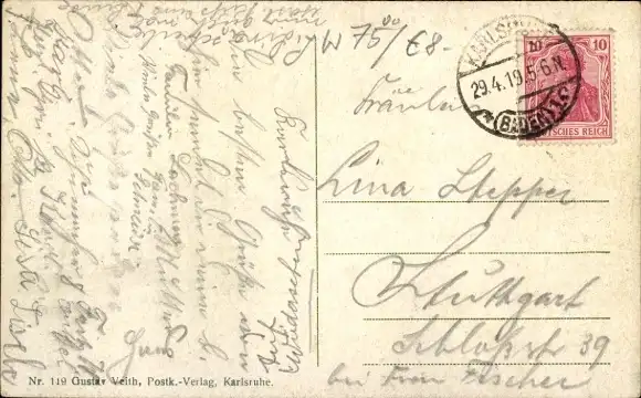 Zustand, siehe Scan, gelaufen, 1919 - ca 14 cm X 9 cm