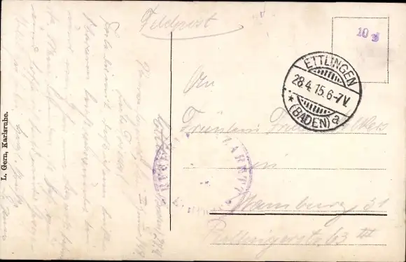 Zustand siehe Scan, gelaufen, 1915 - ca 14 cm X 9 cm