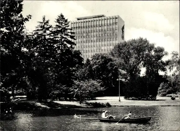 Ak Karlsruhe in Baden, Karlsruher Lebensverischerung mit Stadtgarten See, Ruderboot