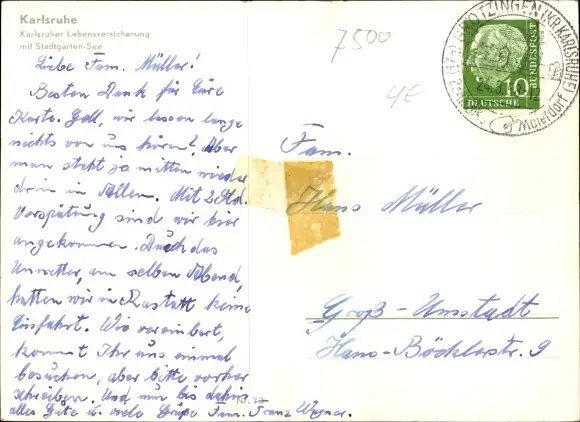Zustand, siehe Scan, gelaufen, 1958 - ca 14 cm X 11 cm