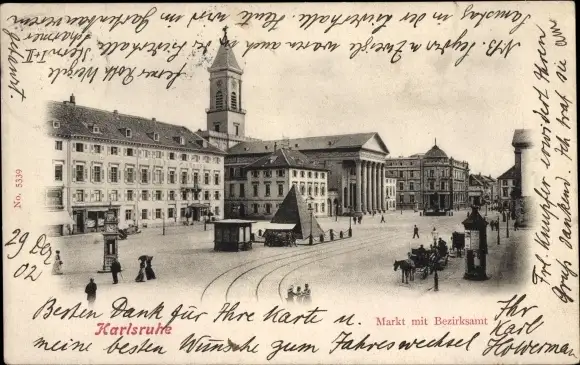 Ak Karlsruhe in Baden, Markt mit Bezirksamt