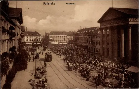 Ak Karlsruhe in Baden, Marktplatz, Straßenbahn