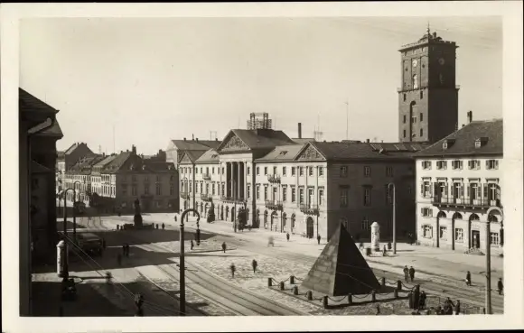 Ak Karlsruhe in Baden, Marktplatz und Rathaus, Pyramide